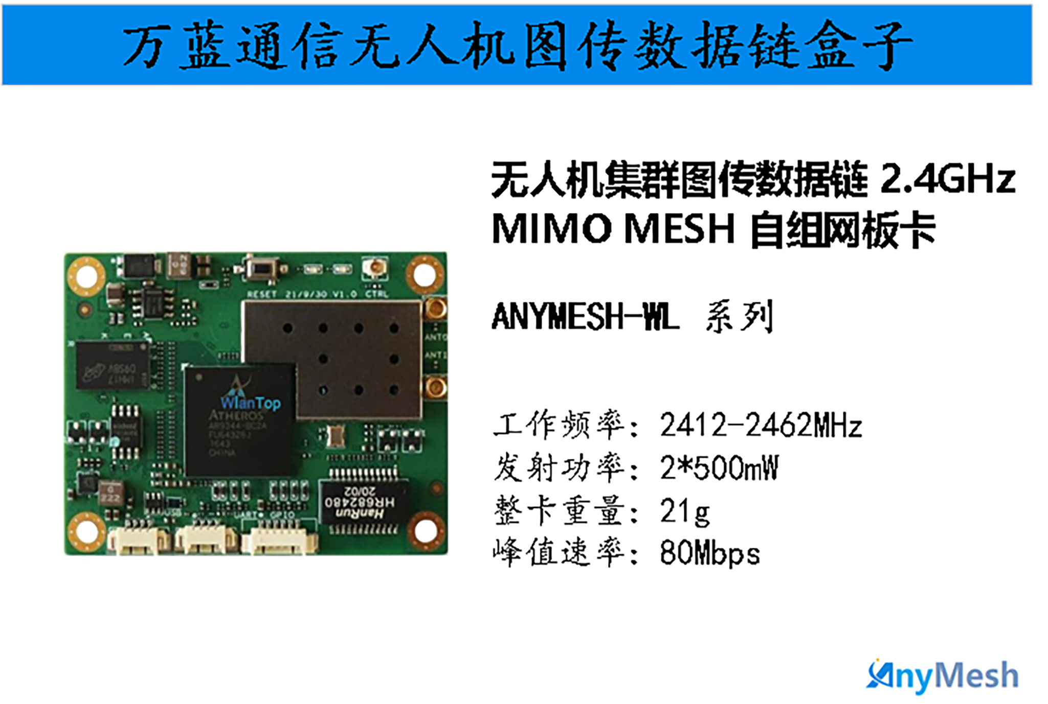 无人机集群图传数据链 2.4GHz MIMO MESH 自组网板卡