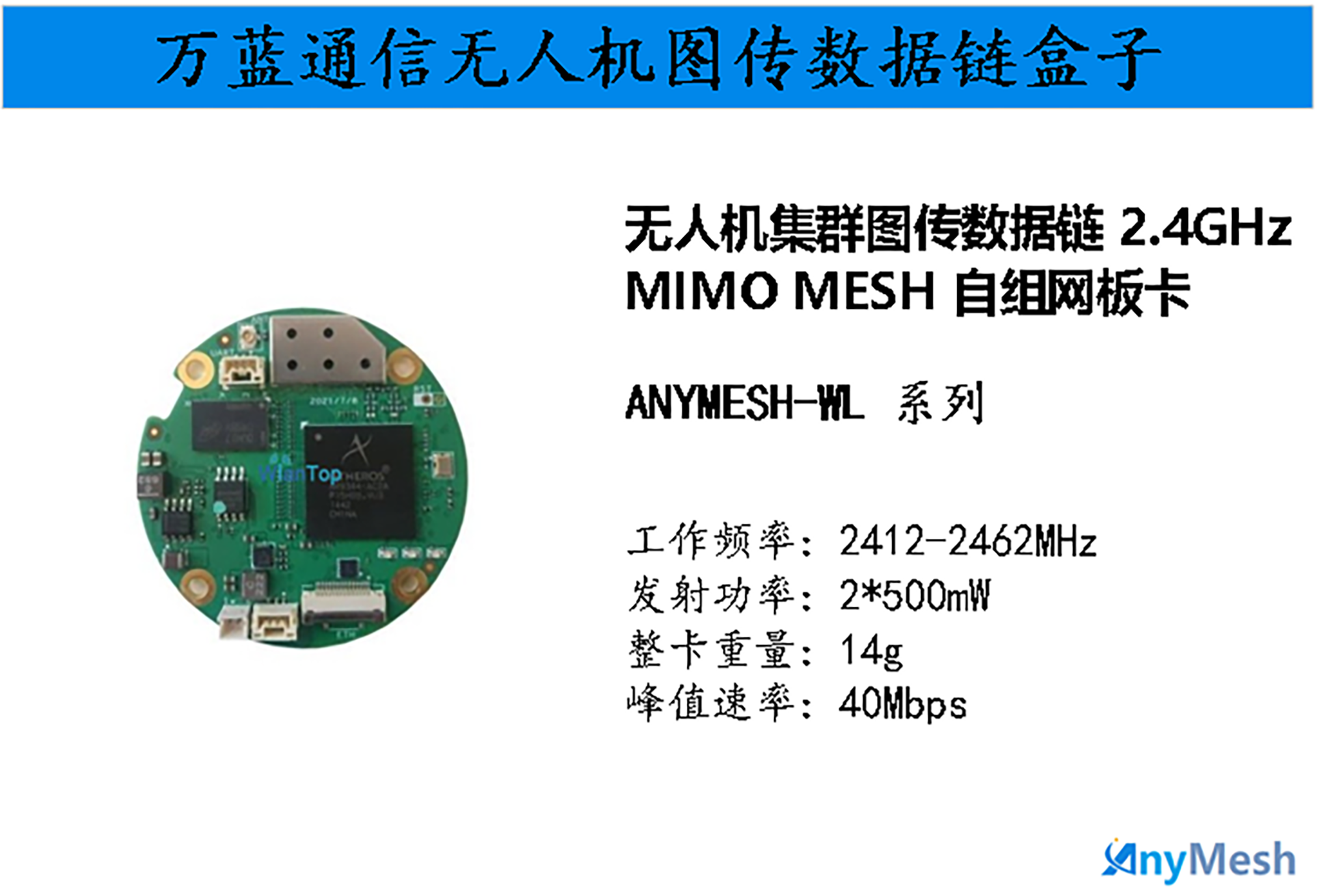 低成本无人机图传数据链2.4GHz MESH 500mw自组网板卡